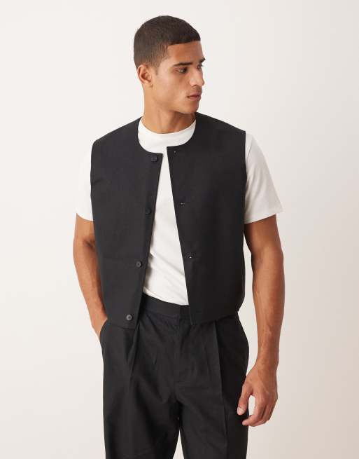 ASOS DESIGN boxy cropped suit vest in black linen blend