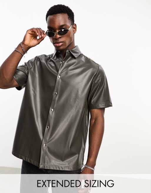 ASOS DESIGN boxy faux leather shirt in brown