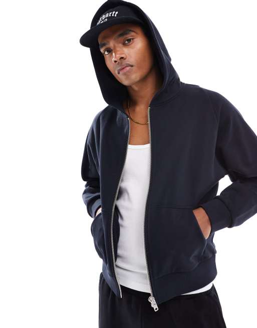 ASOS DESIGN boxy fit zip through hoodie in washed black
