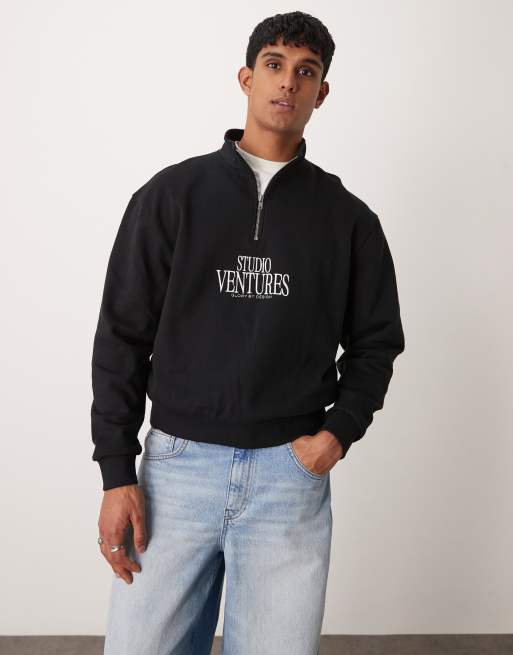 ASOS DESIGN boxy funnel neck sweatshirt with chest print in black
