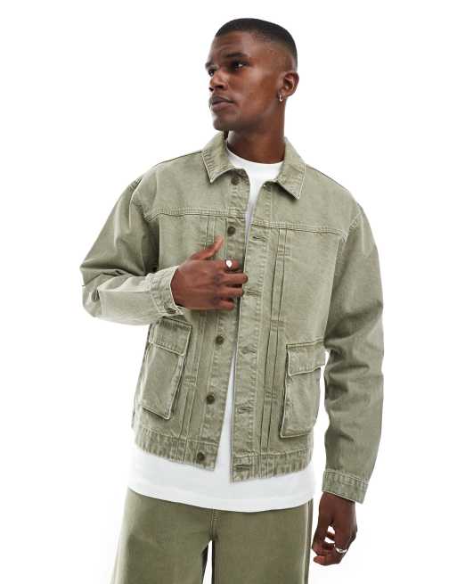 ASOS DESIGN boxy harrington jacket in khaki denim - part of a set