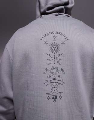ASOS DESIGN boxy hoodie with spine print in charcoal