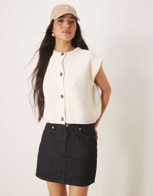 ASOS DESIGN boxy knit stitch vest with button detail in cream