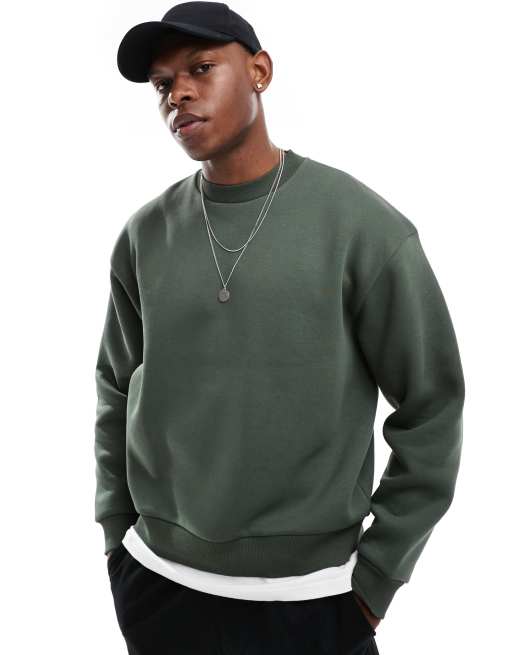 ASOS DESIGN boxy oversized crew neck sweatshirt in dark green