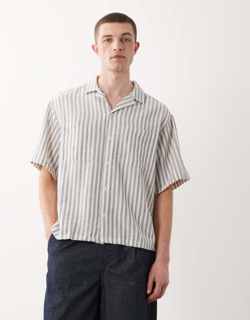 ASOS DESIGN boxy oversized crochet striped shirt in beige
