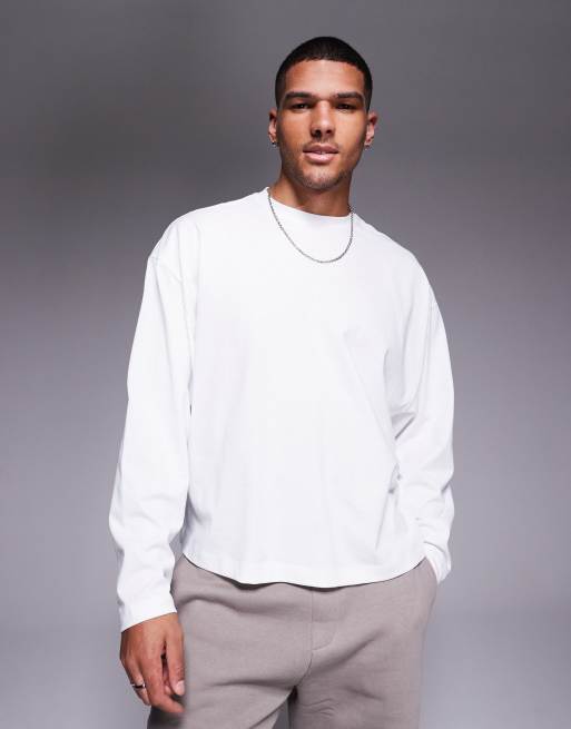 ASOS DESIGN boxy oversized long sleeve T-shirt with drop armhole in white