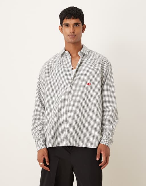 ASOS DESIGN boxy oversized plaid shirt with chest embroidery in black