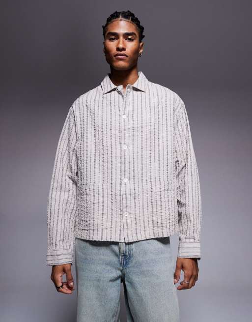 ASOS DESIGN boxy oversized seersucker striped shirt in neutral