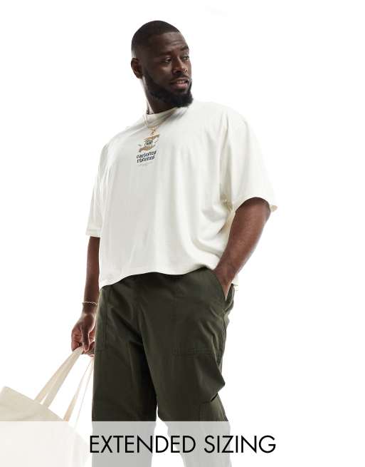 ASOS DESIGN boxy oversized T-shirt in beige with celestial front print