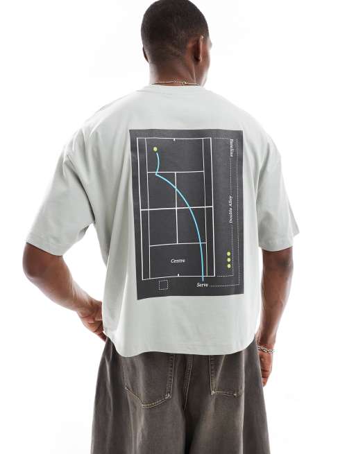 ASOS DESIGN boxy oversized t-shirt with back graphic in light gray
