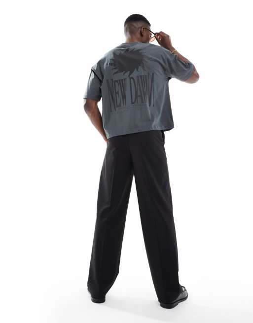 ASOS DESIGN boxy oversized T-shirt with celestial graphic in charcoal