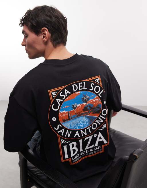 ASOS DESIGN boxy oversized T-shirt with Ibiza back print in black.