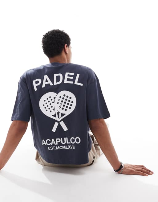 ASOS DESIGN boxy oversized T-shirt with padel graphic in navy