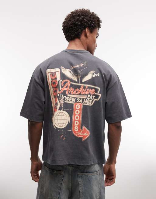 ASOS DESIGN boxy oversized t-shirt with retro neon signs graphic in washed gray