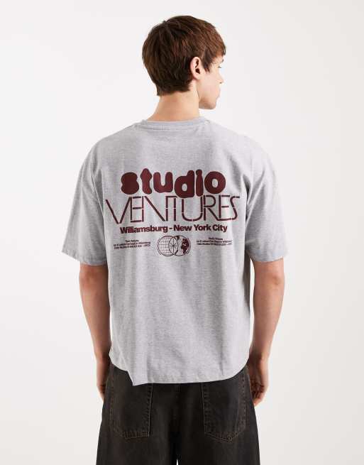 ASOS DESIGN boxy oversized T-shirt with text graphic in gray heather