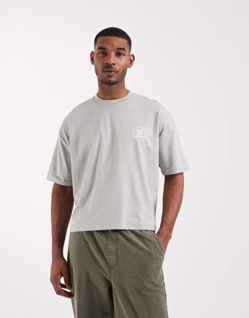 ASOS DESIGN boxy oversized T-shirt with text graphic in gray