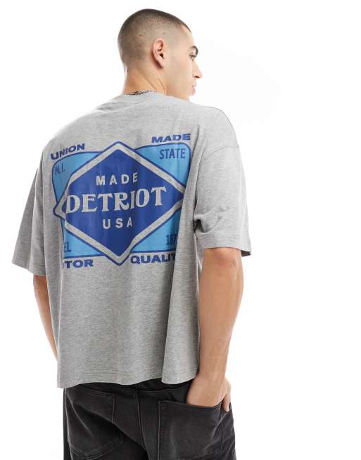 ASOS DESIGN boxy oversized T-shirt with workwear back print in gray heather