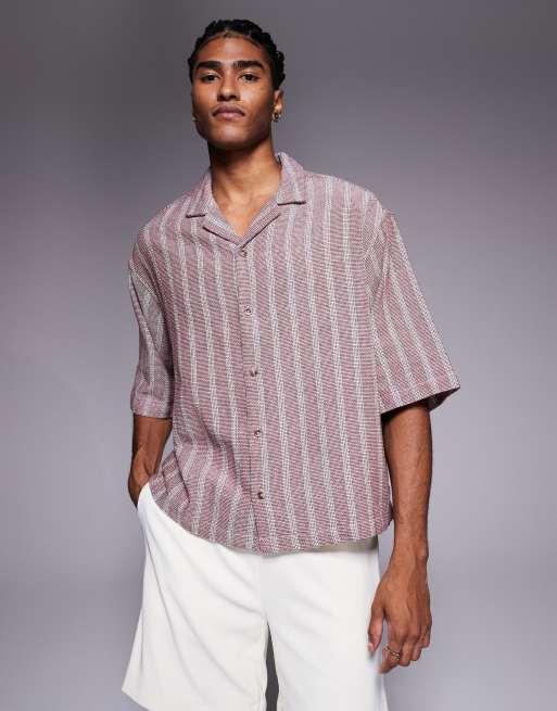 ASOS DESIGN boxy oversized textured shirt in burgundy stripes