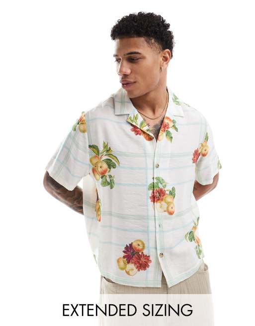 ASOS DESIGN boxy relaxed revere shirt with check and fruit print in white