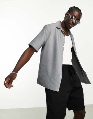 ASOS DESIGN boxy suedette shirt with concealed placket and side slits in gray