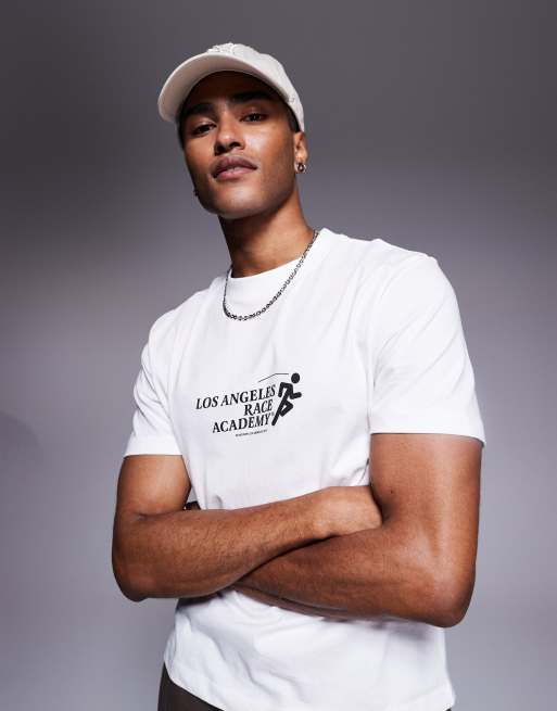 ASOS DESIGN boxy T-shirt with sports graphic in white