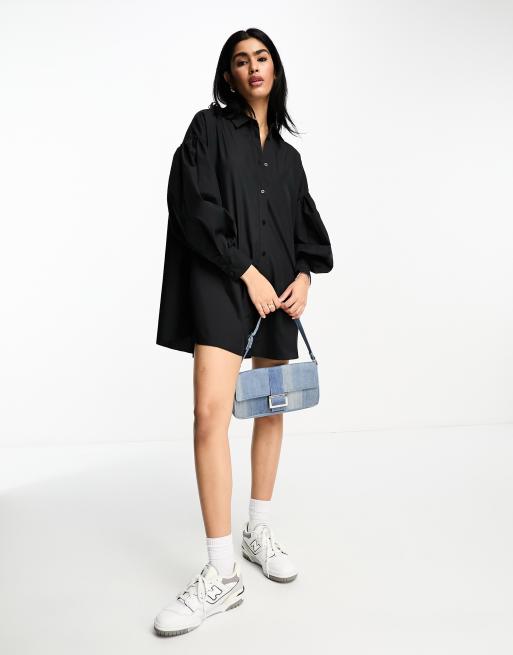 ASOS DESIGN boyfriend shirt mini dress with blouson sleeve in black