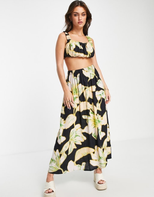 ASOS DESIGN bra top and maxi set in bright tropical print