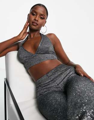 ASOS DESIGN bralet in sparkle silver - part of a set