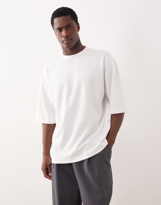 ASOS DESIGN breatheMAX™ heavyweight oversized half sleeve T-shirt in white cotton blend