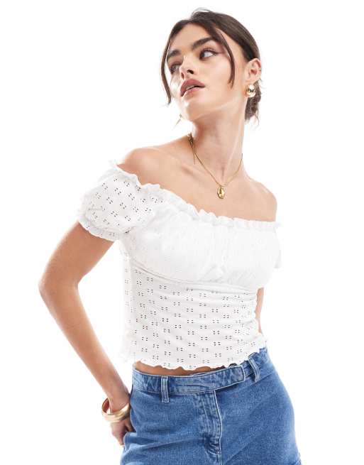 ASOS DESIGN broderie milkmaid top in white