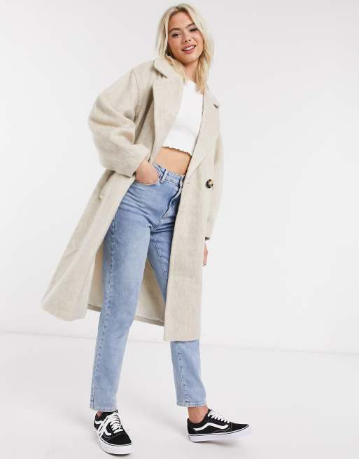 ASOS DESIGN brushed coat with sleeve detail in stone