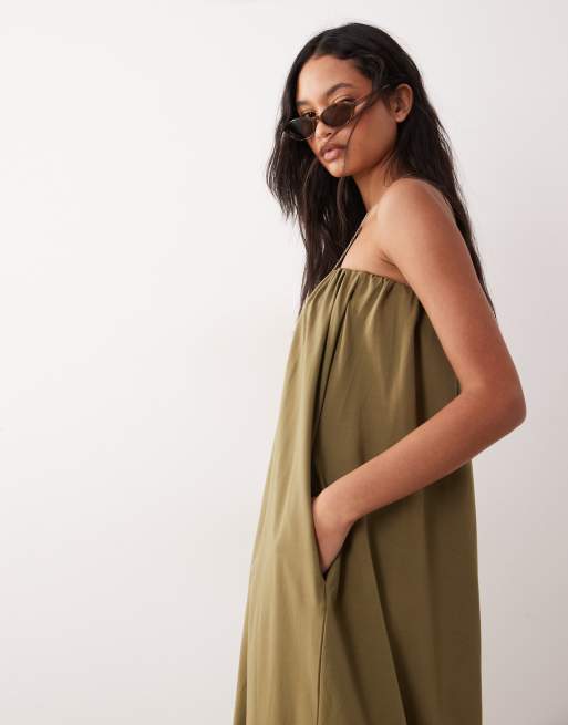 ASOS DESIGN bubble midaxi dress in khaki green