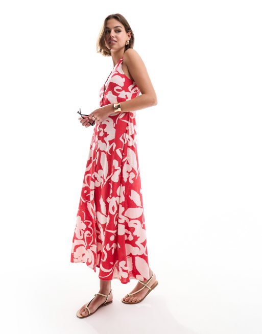 ASOS DESIGN button down linen midi dress with full skirt abstract print