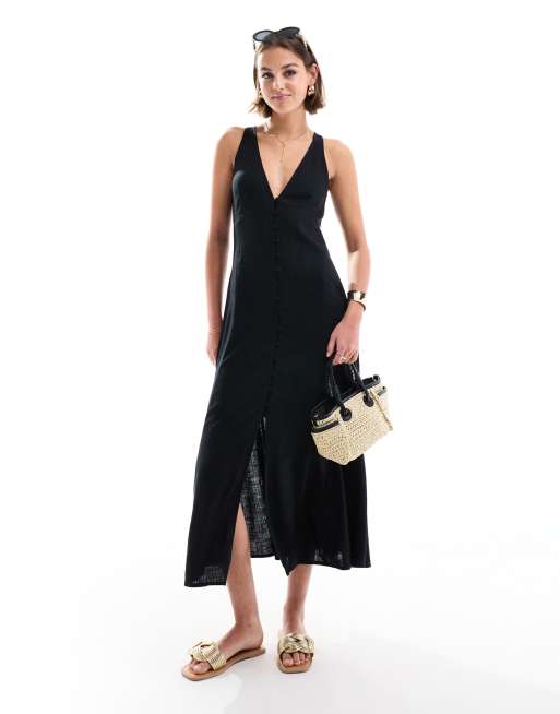 ASOS DESIGN button down midi dress with full skirt in black