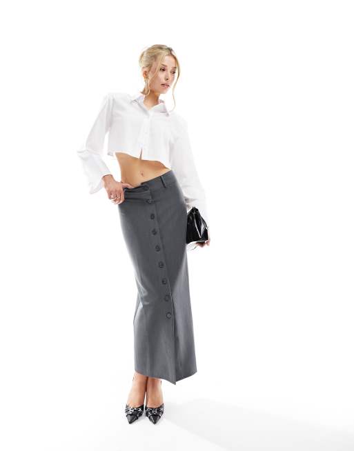 ASOS DESIGN button through pencil maxi skirt in dark gray