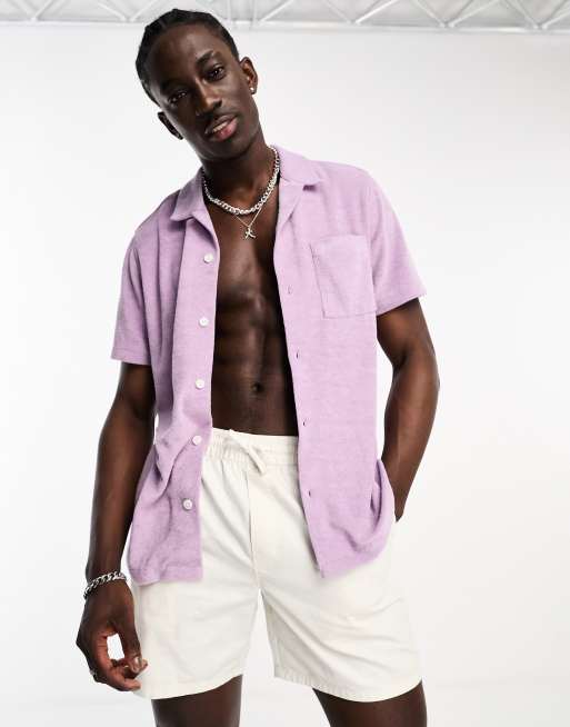 ASOS DESIGN camp collar terrycloth shirt in lilac