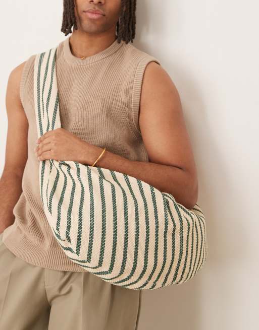 ASOS DESIGN canvas sling cross body bag in ecru with green stripe