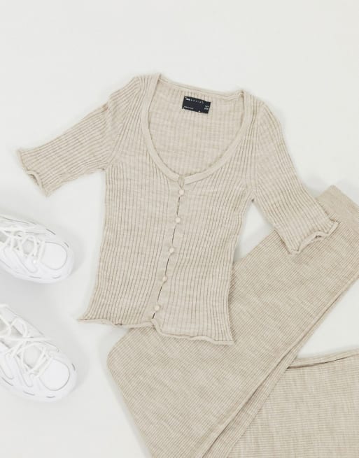 ASOS DESIGN cardi and pants two-piece in oatmeal