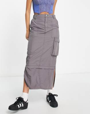ASOS DESIGN cargo midi skirt in gray