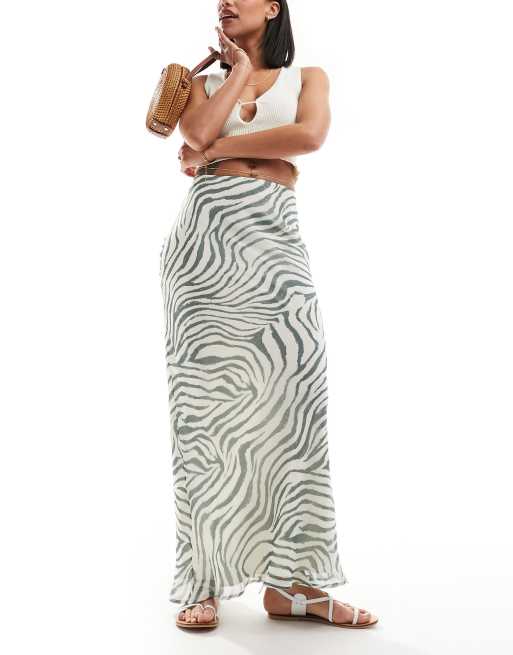 ASOS DESIGN chiffon bias maxi skirt in green zebra print