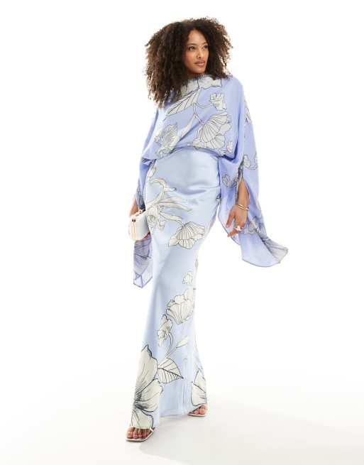 ASOS DESIGN chiffon overlay satin bias cut maxi dress in blue floral print