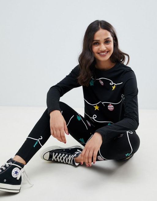 ASOS DESIGN christmas lights print glitter two-piece