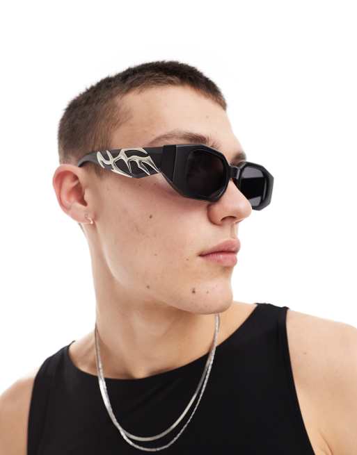 ASOS DESIGN chunky angled rectangle sunglasses with Y2K grunge detail in black