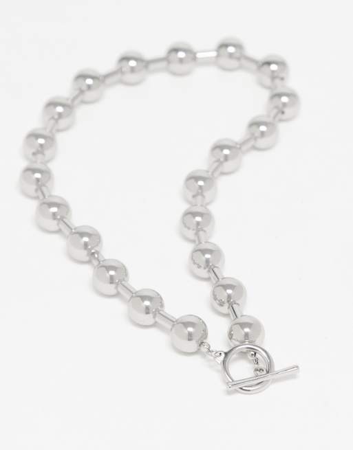 ASOS DESIGN chunky ball chain necklace with T bar in silver tone