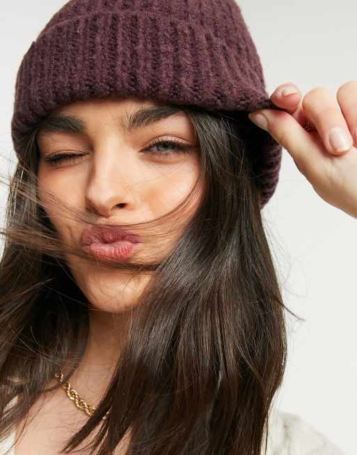 ASOS DESIGN chunky beanie with deep cuff in purple