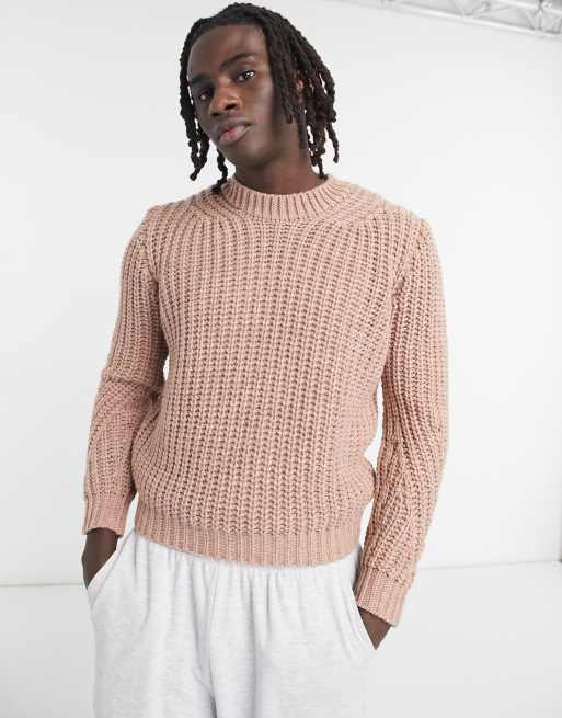 ASOS DESIGN chunky knit boxy sweater in light pink