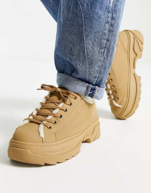 ASOS DESIGN chunky lace up shoe in tan with teddy lining