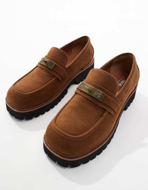 ASOS DESIGN chunky loafers in tan and white