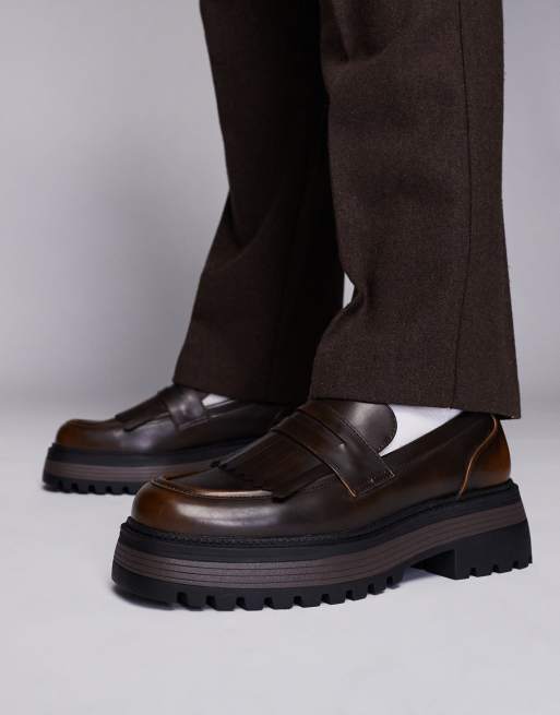 ASOS DESIGN chunky loafers with tassel in brown