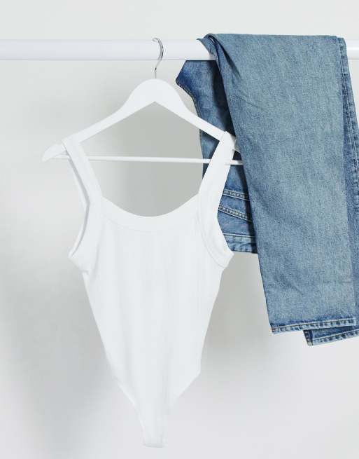 ASOS DESIGN chunky rib tank bodysuit with scoop back in white